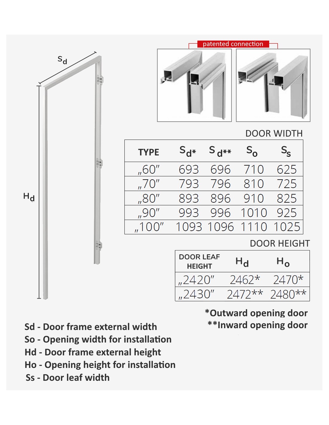 Tubular chipboard filling.Door frames: Aluminum not painted frame. With and without ventilation undercut.Production-delivery term of other widths and configurations: 20 - 30...
