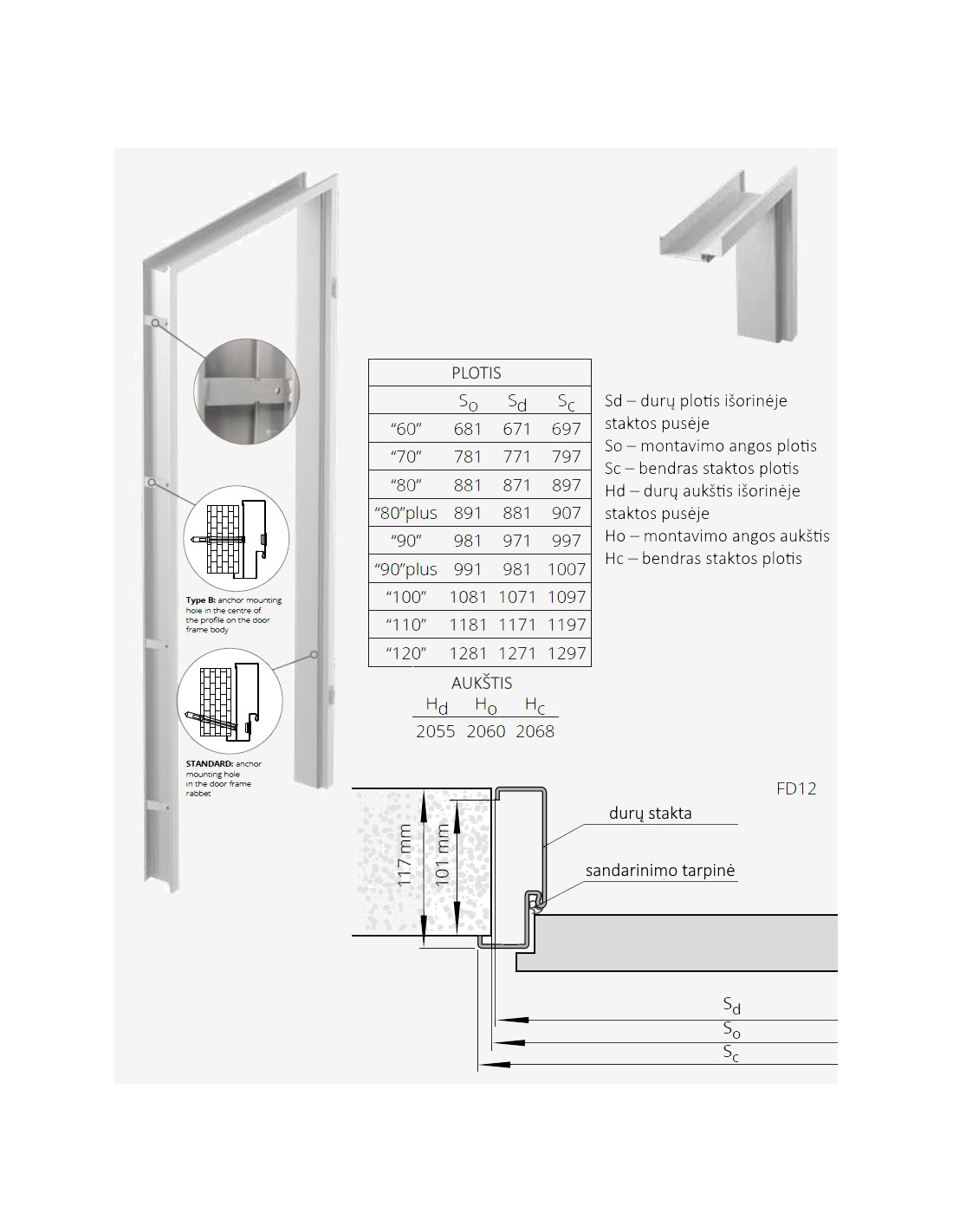 • Fixed metal FD12 made of 1.5 mm thick steel sheet with rebate seal.