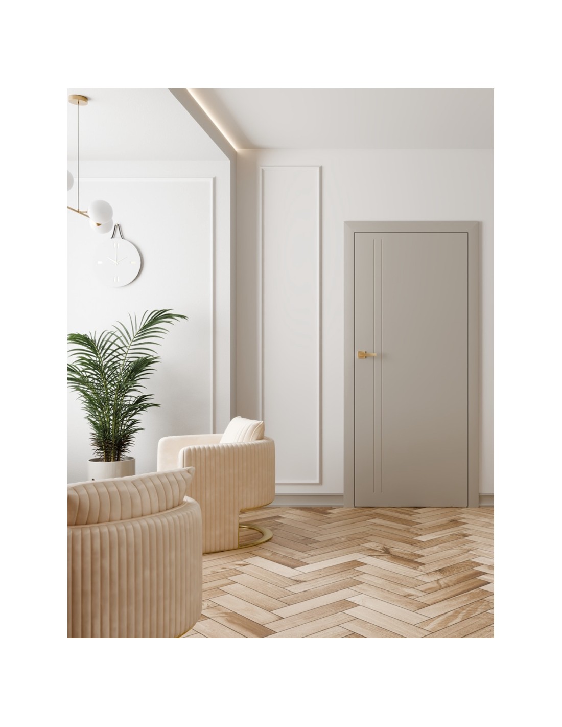 "BINITO" - the door is a very unique and very effective design. This door model will look great in a classic and minimalist style. Doors can be painted white, ecru, latte and gray. These colors will brighten anyone up wonderfully. The applied UV varnish is well protected against mechanical damage to the surface of the shutters, and thanks to the UV technology used, the varnish has excellent resistance to the harmful effects of sunlight. The doors have a wide range of options and can be customized according to your needs, both in a wide range of sizes and as sliding and double doors.