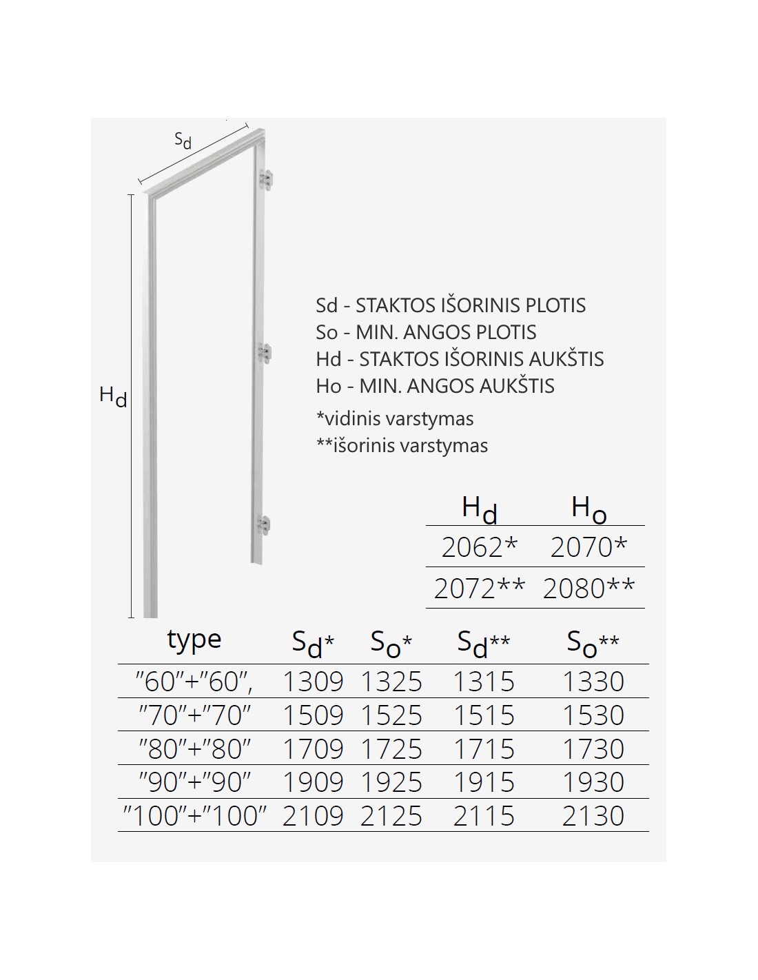 Aukštis: Išorinio varstymo - min. 207 cm. Vidinio varstymo - min. 208 cm.