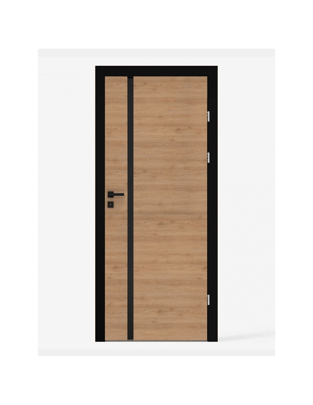 Durų varčios karkasas pagamintas iš patvarios MDF plokštės, sutvirtintos fanera, užpildas - perforuota medžio drožlių plokštė. Stiklas Juodas/Matinis 8 cm pločio. Varčios kraštinės juodos spalvos.