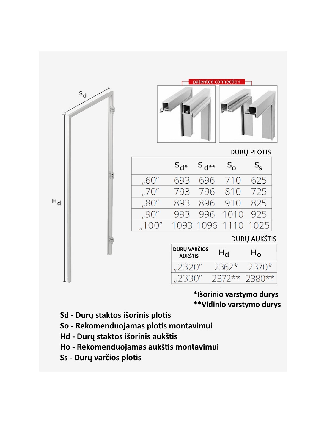Nematomos vidaus durys "HARMONY" 242/243 cm Gruntas